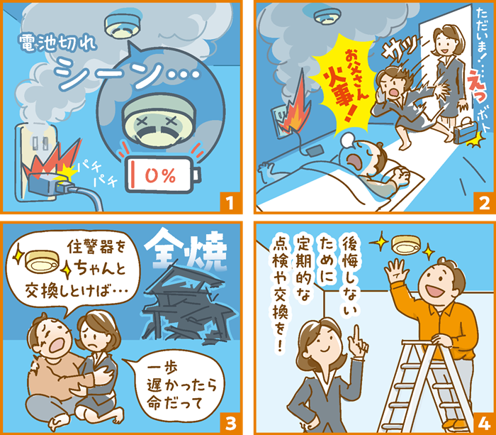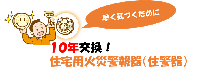 古くなった住警器を放置したままにすると、故障や電池切れで正常に作動しなくなるおそれがあります。10年を目安に交換しましょう。