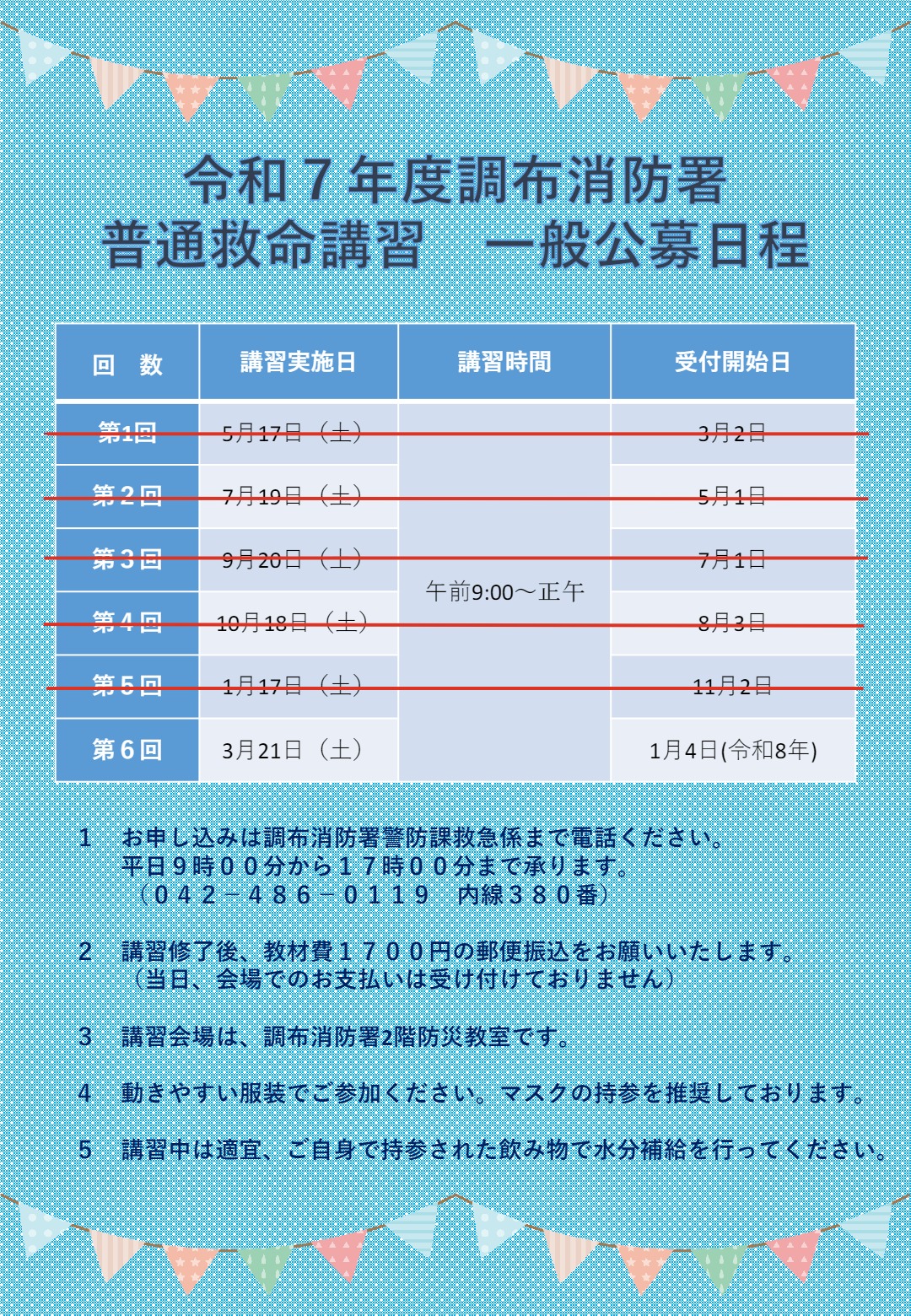 調布消防署では個人を対象とした救命講習(一般公募)を定期的に実施しています。
