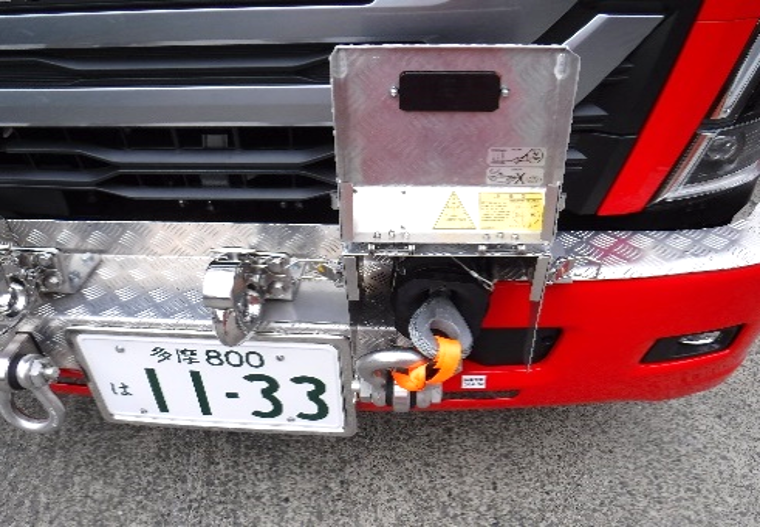 車体前部にワイヤーロープが設置されており、事故車両の固定や、牽引作業等に活用します。