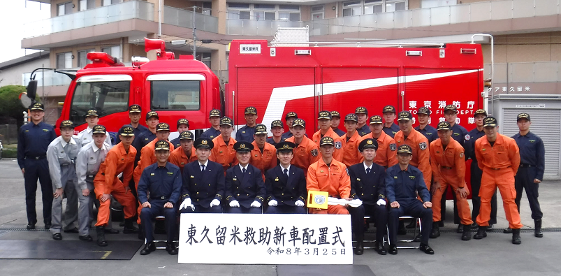 令和8年3月25日に東久留米救助車の新車配置式を執り行いました。
