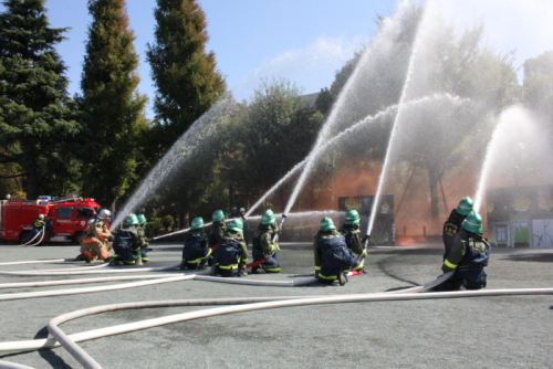 合同点検とは、消防団の士気・規律・災害活動技術の錬成状況を確認するために行うものです。当日は、本郷消防団・小石川消防団によるチェーンソーを活用した破壊訓練や一斉放水による消火訓練を予定しています。