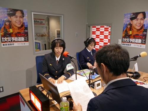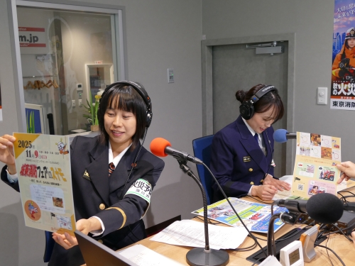 11月9日(日)から15日(土)まで実施される秋の火災予防運動に伴い、深川消防団と合同でラジオの生放送に出演し、都民の皆さまに火災予防意識を高めてもらうように呼びかけました。