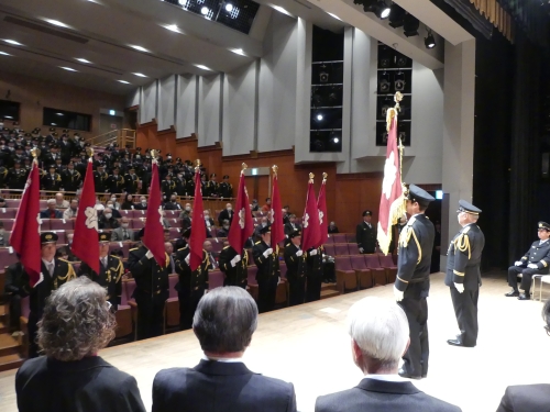 1月18日(日)、亀戸文化センターにおいて城東消防団始式を挙行しました。江東区長をはじめ多くの来賓や地域の皆様をお招きし、厳正かつ盛大に開催されました。全国的に消防団員の減少が問題になっている中、城東消防団には令和7年中に11名の新入団員が入団しました。新入団員宣誓では代表の福地 彩さんが「地域の皆様の信頼と期待に応えるために努力していきます。」と強い決意を表明しました。