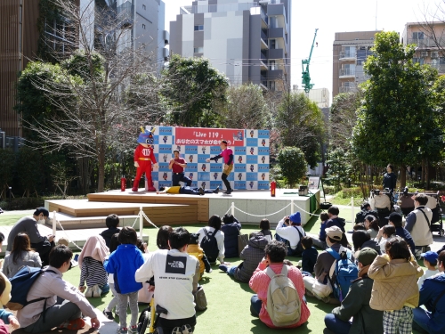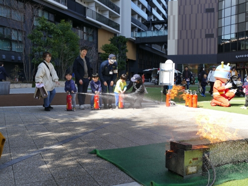 令和8年3月7日(土)、カメイドクロック(江東区亀戸六丁目31番6号)において、「城東消防フェアinカメイドクロック」(消防の仕事を 見て 知って 体験しよう!)を開催しました。レスキュー隊による消防演技、消防劇、初期消火体験、消防車両展示、AED体験、消防ミニカー乗車体験、ミニ防火衣着装体験を実施し、約2,000名もの家族連れにご参加いただき、大盛況となりました。参加者からは「いろいろな体験を通じて、火災予防について学べてよかった。」との声が寄せられ、火災予防意識の普及啓発を行うことができました。