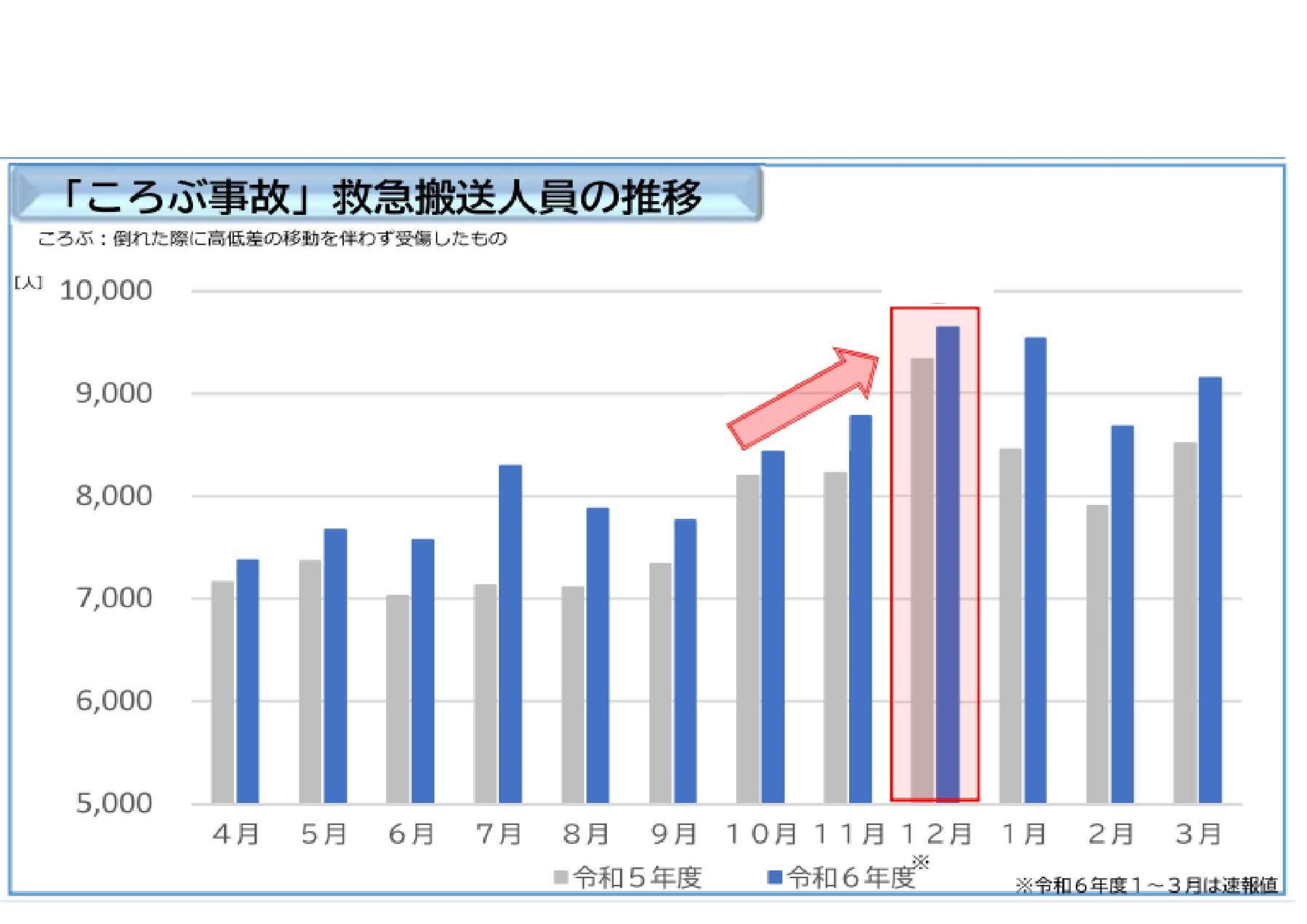 原因の多くは、家の中の小さな段差・階段や路面凍結・雪です。