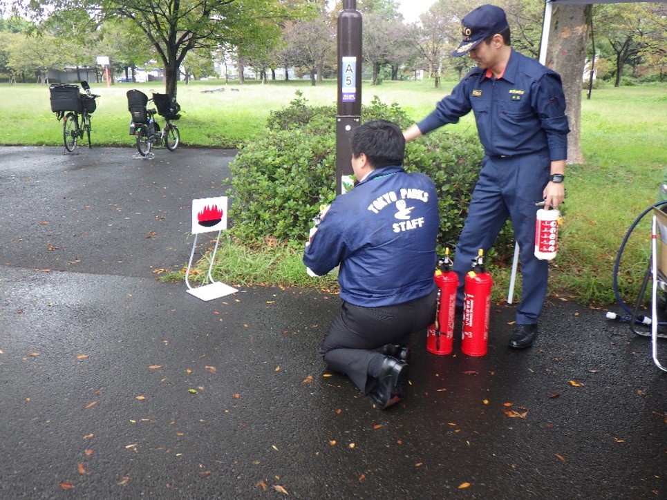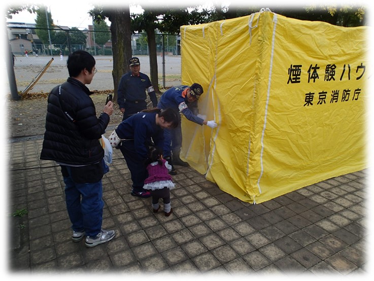 舎人公園防災訓練3月1日(土)舎人公園にて防災訓練を実施しました。 初期消火体験、煙体験、消火器の展示コーナー等を設け、子育て世帯を中心とした公園に遊び来た多くの家族や町会の皆さんに対する火災予防意識の高揚が図ることができました。なかでも展示した住宅用消火器に興味を示し、初期消火訓練の重要性を理解しながら真剣に訓練に取り組んでいる姿勢が印象的でした。