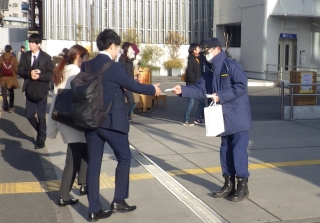 本事業は、11月から急増している住宅火災による死者の低減を目的に、車両出向時における拡声器による広報のほか、東武線西新井駅及び竹ノ塚駅周辺での火災予防リーフレットの配布、管内商業施設のデジタルサイネージによる広報素材の掲示等により、広く管内住民に火災予防を広報したものです。