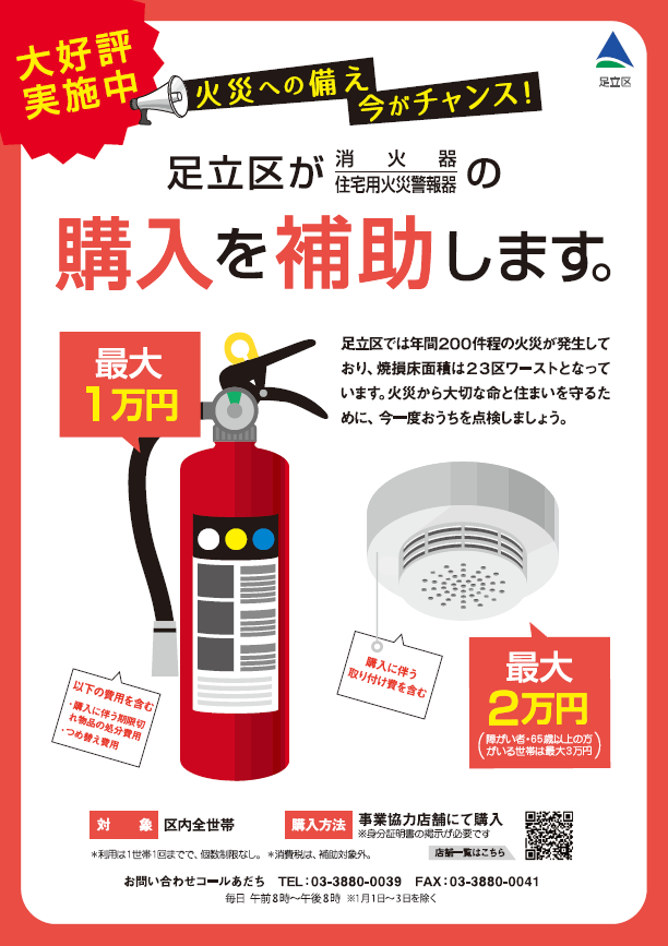 足立区では、消火器と住宅用火災警報器の購入を補助しています。