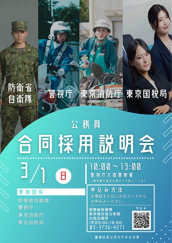 問合せ先:防衛省自衛隊 東京地方協力本部 大田出張所(平日9:00~18:00)