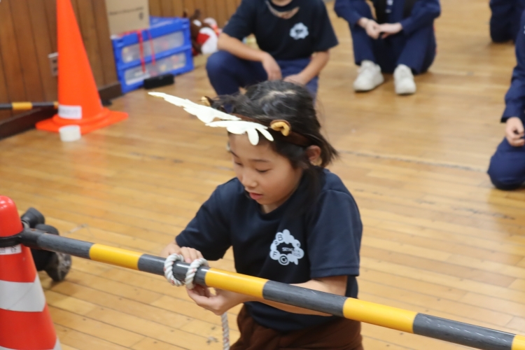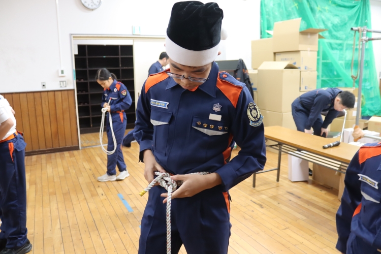 最初はロープの使い方に苦戦していましたが、コツが掴めてからは積極的にいろいろなロープの結び方を覚えていました。災害時や普段の生活にも役に立つ結び方なので、忘れずに復習しましょう。