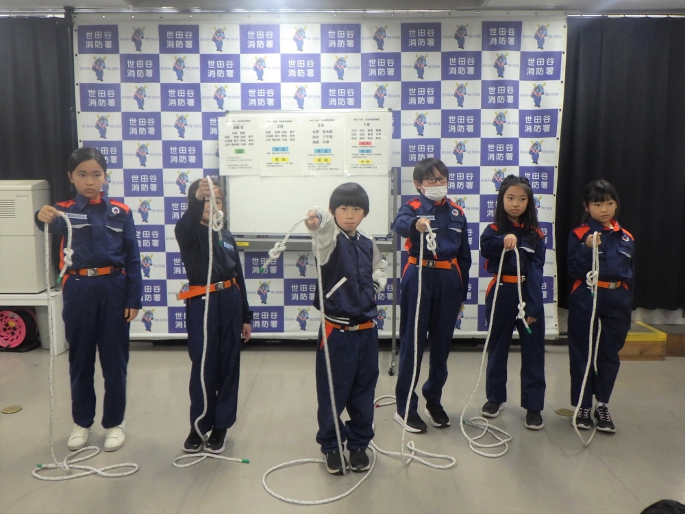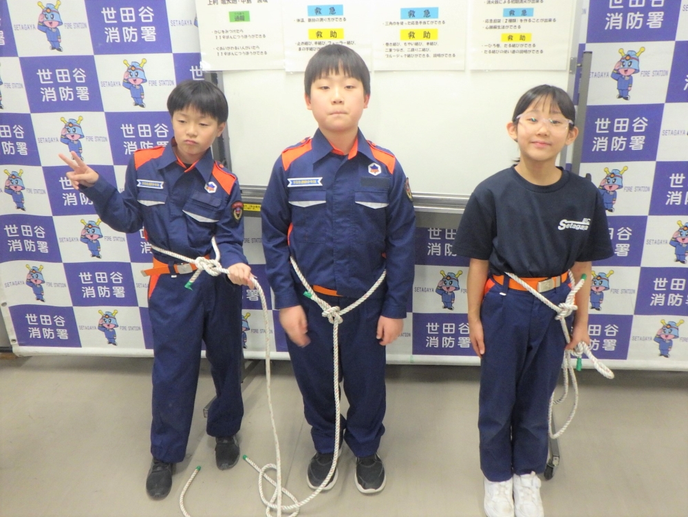 先輩団員たちは、同年代の子どもたちに丁寧に指導をし、日頃の訓練成果を発揮することが出来ました。新入団員たちは、世田谷消防署で規律訓練、ロープを使った結索訓練、通報訓練を行い、少年団員としての知識・技術を身に付けることが出来ました。この調子で、これからも頑張っていきましょう!