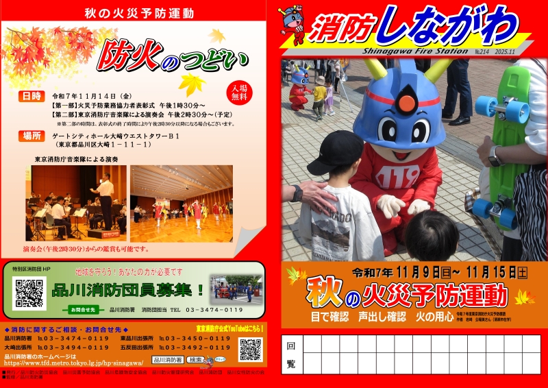 品川消防署では毎年、「春の火災予防運動」、「秋の火災予防運動」の機会を捉え、年に2回、広報紙「消防しながわ」を作成しています。