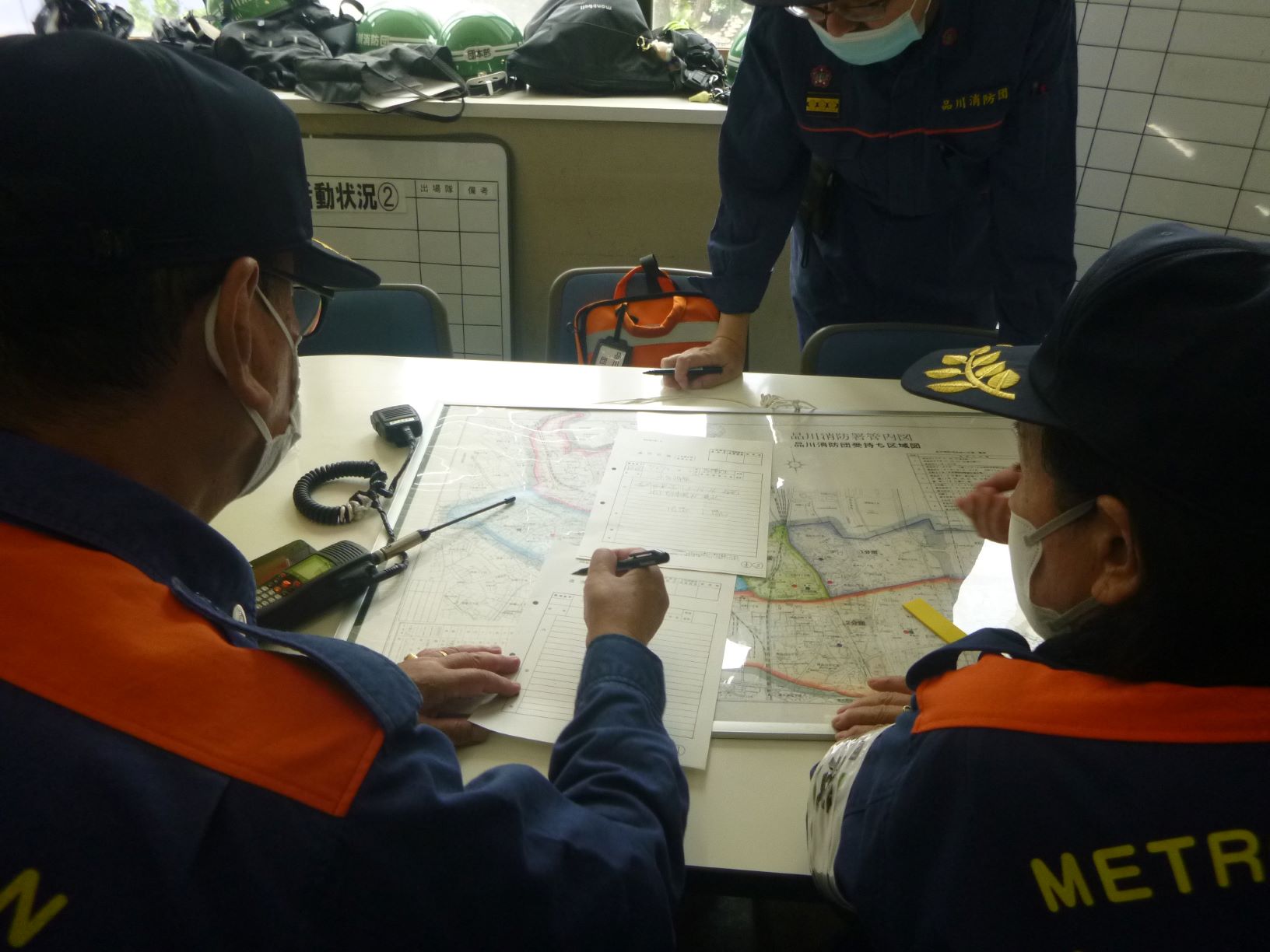 令和7年7月7日(月)から9日(水)の3日間、2方面内の各消防署で「令和7年度方面水災図上訓練」が実施されました。品川消防団は、初日にあたる7日に品川消防署で団本部運営訓練を実施しました。訓練では、本団と参加分団の連絡手段として無線機だけでなく、配置されているタブレットも使用しました。水災発生時に本部と活動隊でどのように連絡を取れば情報が伝わりやすいのか、活動がしやすくなるのか見直すことのできる良い訓練になりました。