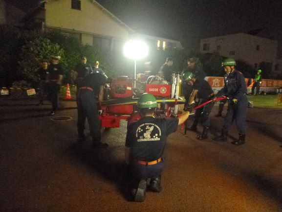 令和7年8月29日(金)、品川消防団は、区立しながわ中央公園にて東京都消防操法大会に向けた教育訓練を実施しました。消防学校から2名の職員を指導員として招き、出場隊のみならず多くの団員が支援のために参加しました。夕方からの訓練でしたが、すっかり日が落ちて、あたりが真っ暗になるまで真剣に取り組みました。まだまだ暑い日が続きますが、しっかり水分補給や休憩をとり、熱中症予防に努めた上で引き続き訓練に励んでいます。
