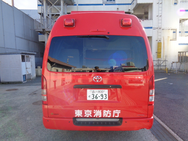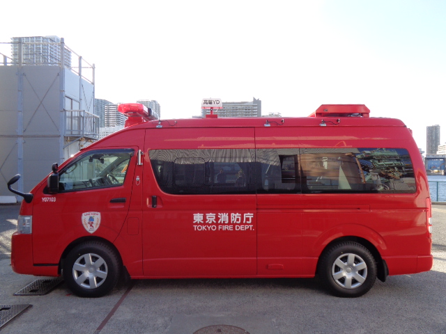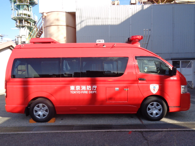 この指揮隊車は、各種の災害現場において指揮拠点として運用することを目的とした車両です。9人乗りワンボックス型の車両をベースに、無線機架台、指揮台等を装備しています。