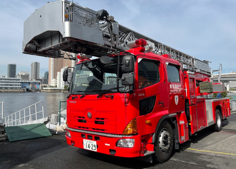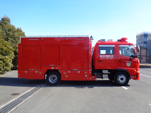 車両、消防艇、消防ヘリなど