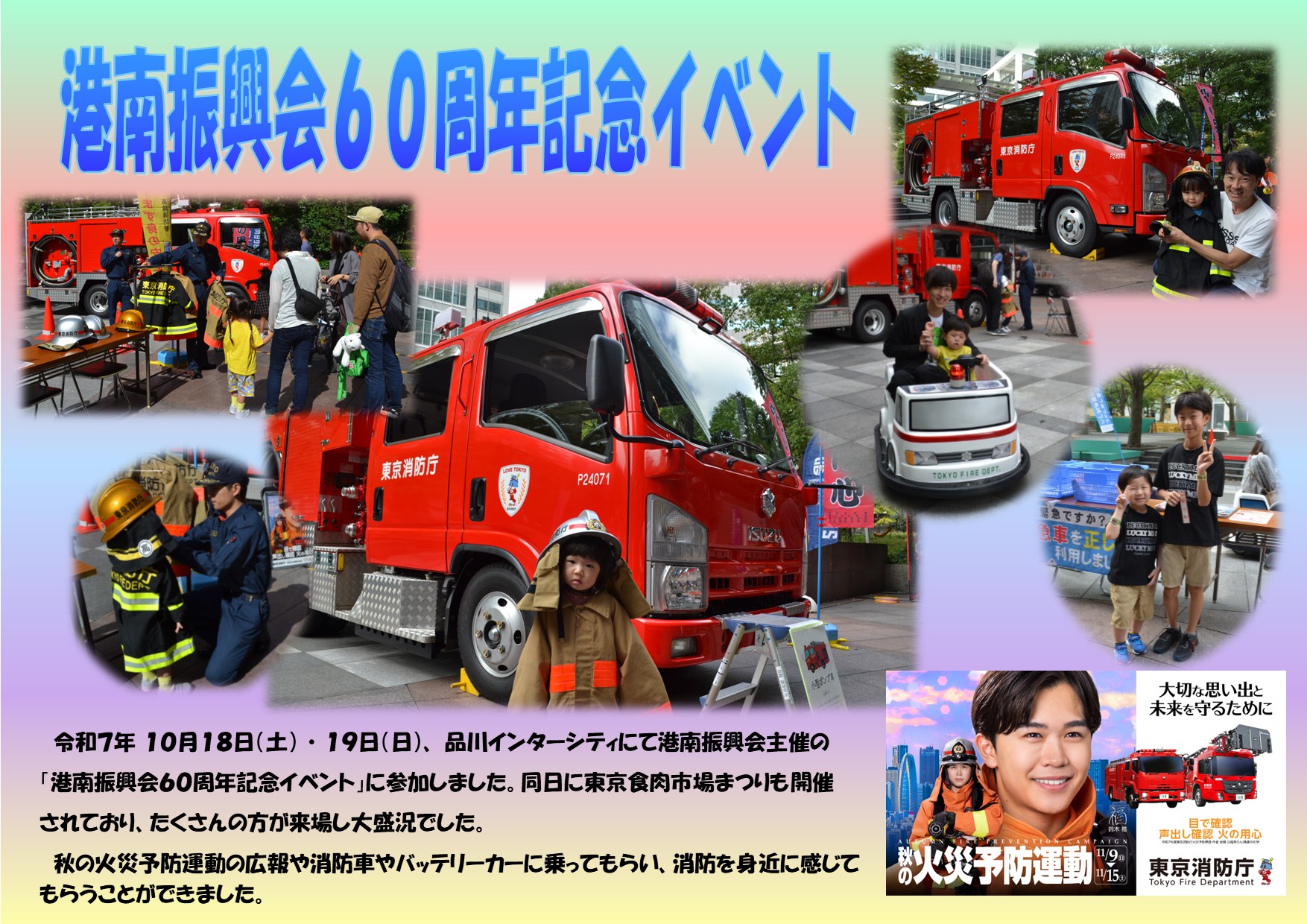 令和7年10月18日(土)・19日(日)、品川インターシティにて港南振興会主催の「港南振興会60周年記念イベント」に参加しました。同日に東京食肉市場まつりも開催されており、たくさんの方が来場し大盛況でした。