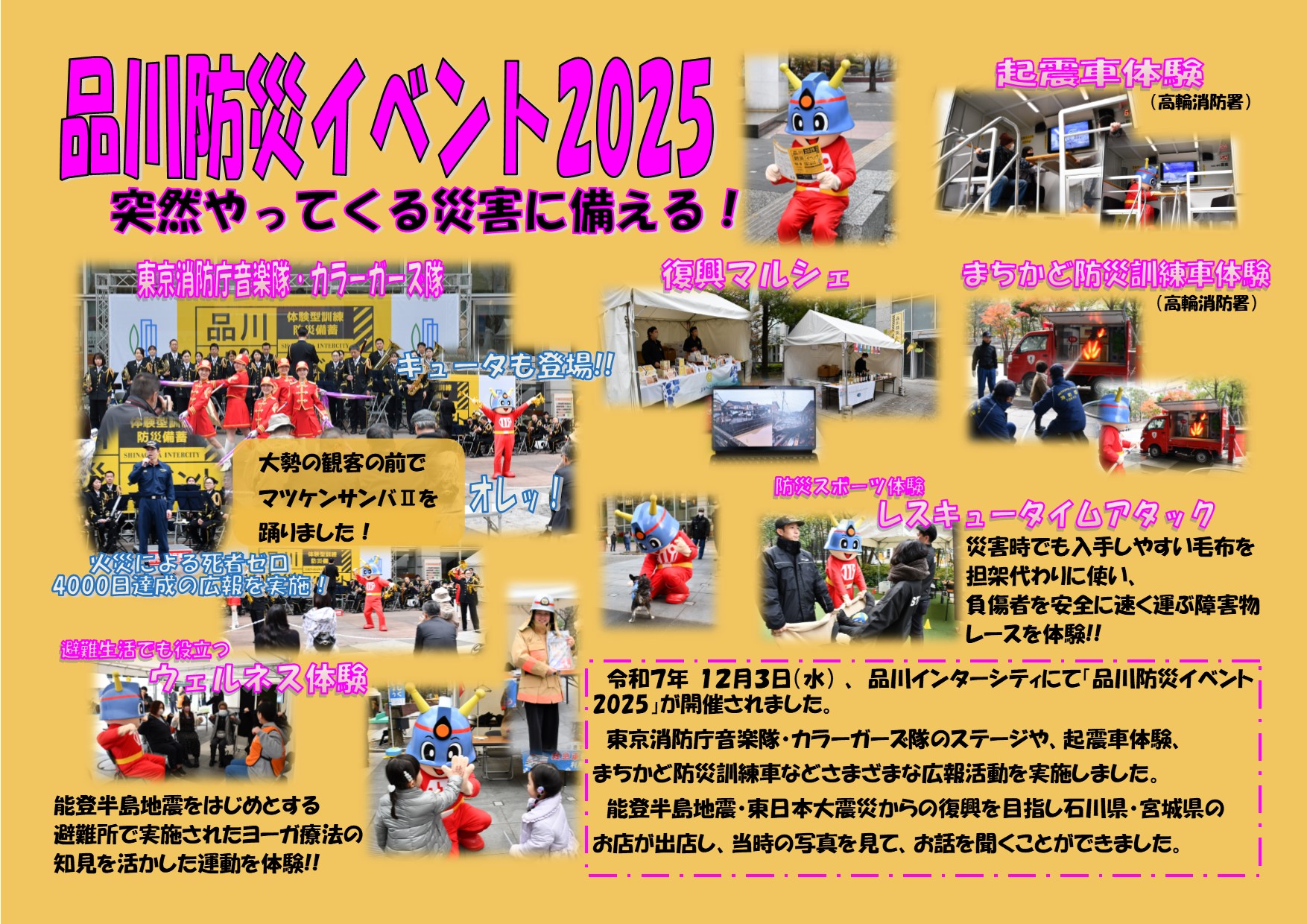 令和7年12月3日(水)、「品川防災イベント2025」が品川駅前の品川インターシティにて開催されました。