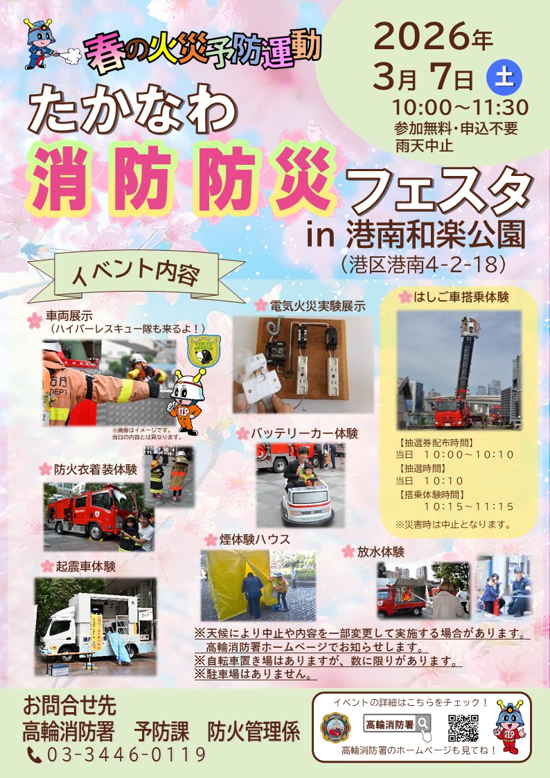 雨天時は中止となります。(高輪消防署ホームページでお知らせします。)
