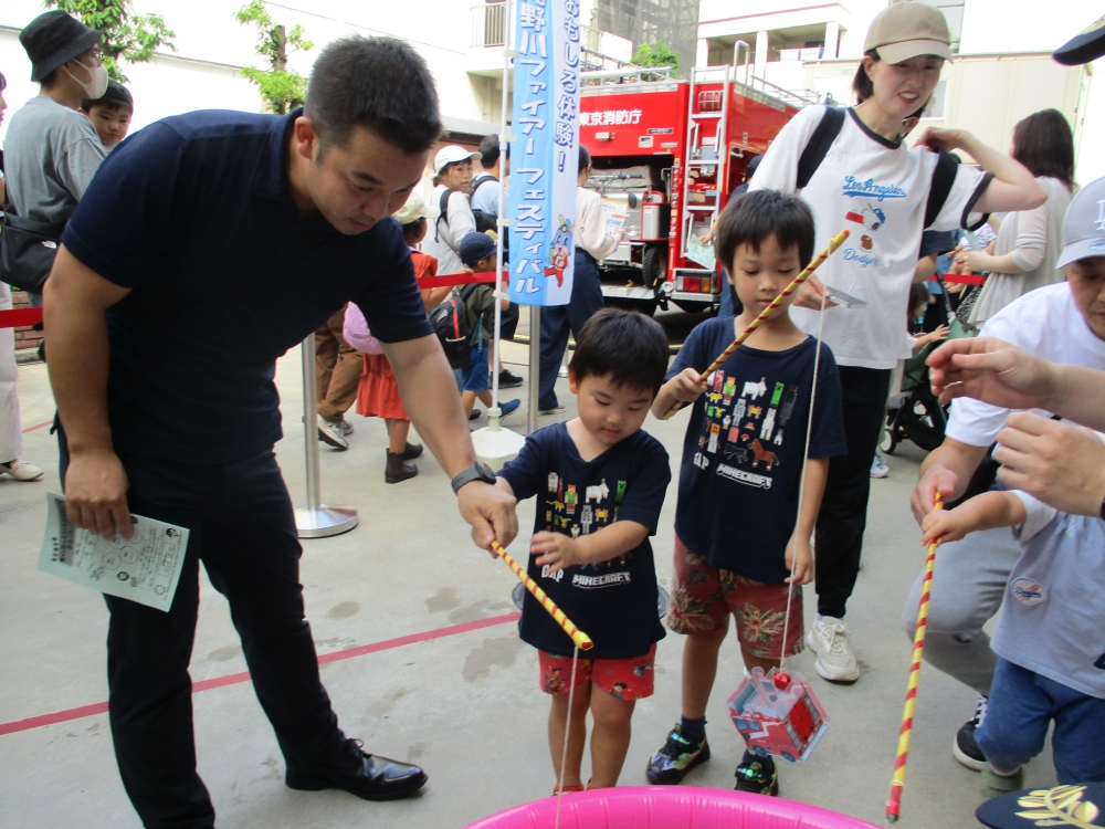 スタンプラリーのスタンプをすべて集めると体験できるミニ消防車・ミニ救急車乗車や車両展示、釣りコーナーなど、親子で楽しめるコーナーを多く設置しました。