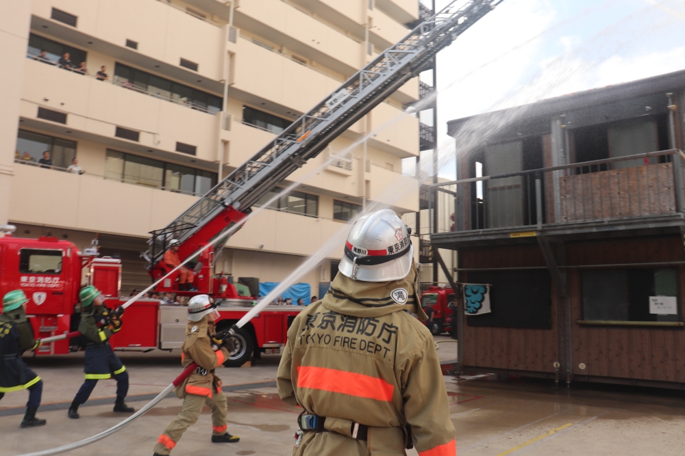初期消火や火災の通報などは都民の方にも参加していただきました。