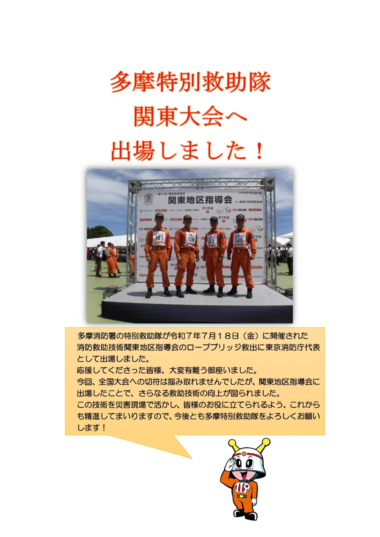多摩特別救助隊が第53回消防救助技術関東地区指導会に出場しました!