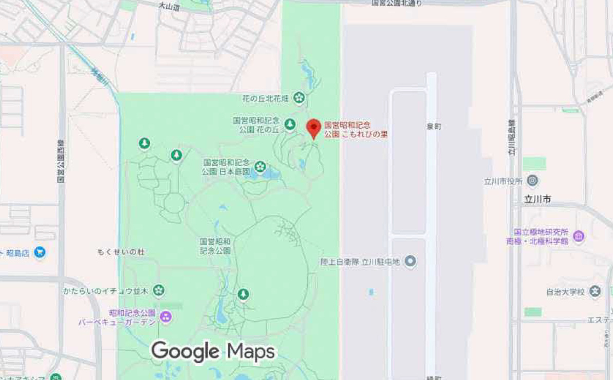 所在地:立川市緑町3173 昭和記念公園砂川ゲートから徒歩約5分