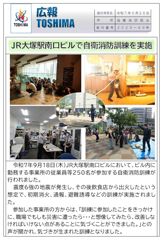 【No.69】JR大塚駅南口ビル自衛消防訓練を実施(File:260KB)