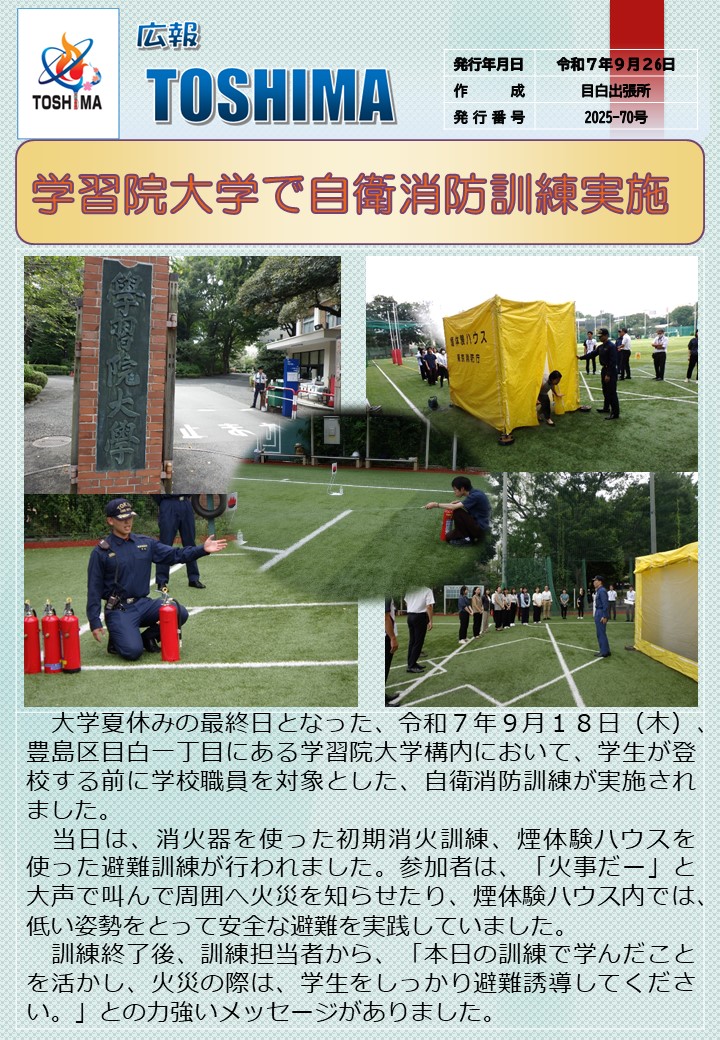 【No.70】学習院大学で自衛消防訓練実施(File:322KB)