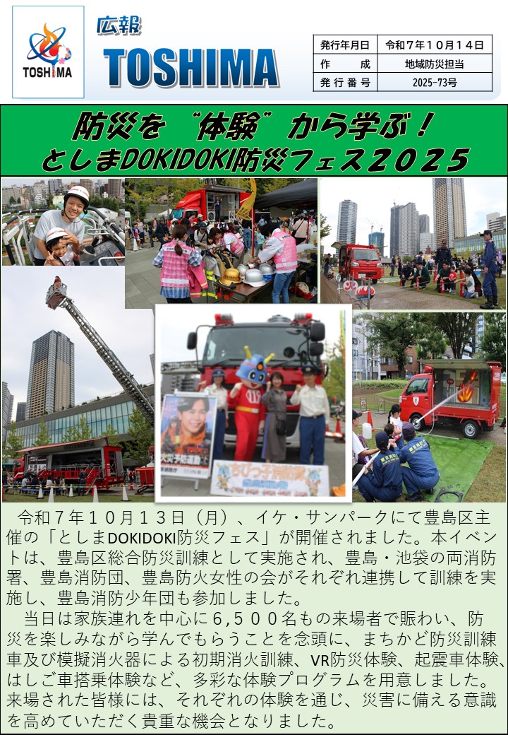 【No.73】防災を体験から学ぶ!としまDOKIDOKI防災フェス2025(File:302KB)