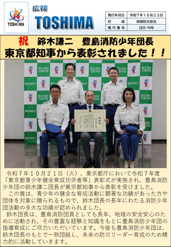 【No.74】 豊島消防少年団長 東京都知事から表彰されました!!(File:259KB)