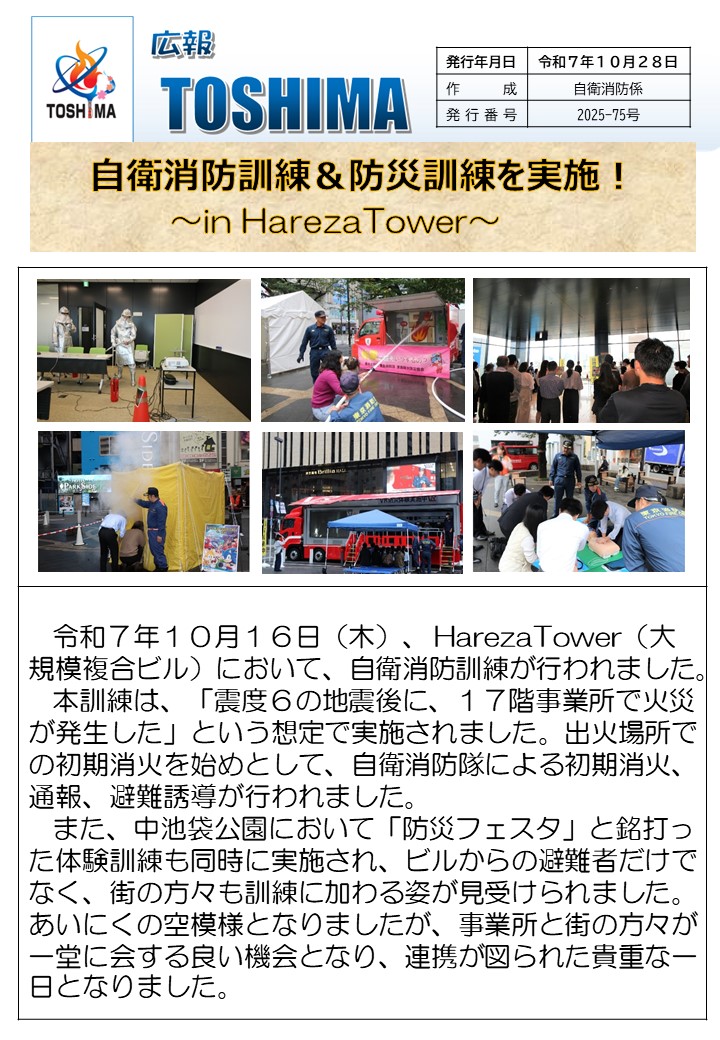 【No.75】 自衛消防訓練&防災訓練を実施!~in HarezaTower~(File:259KB)