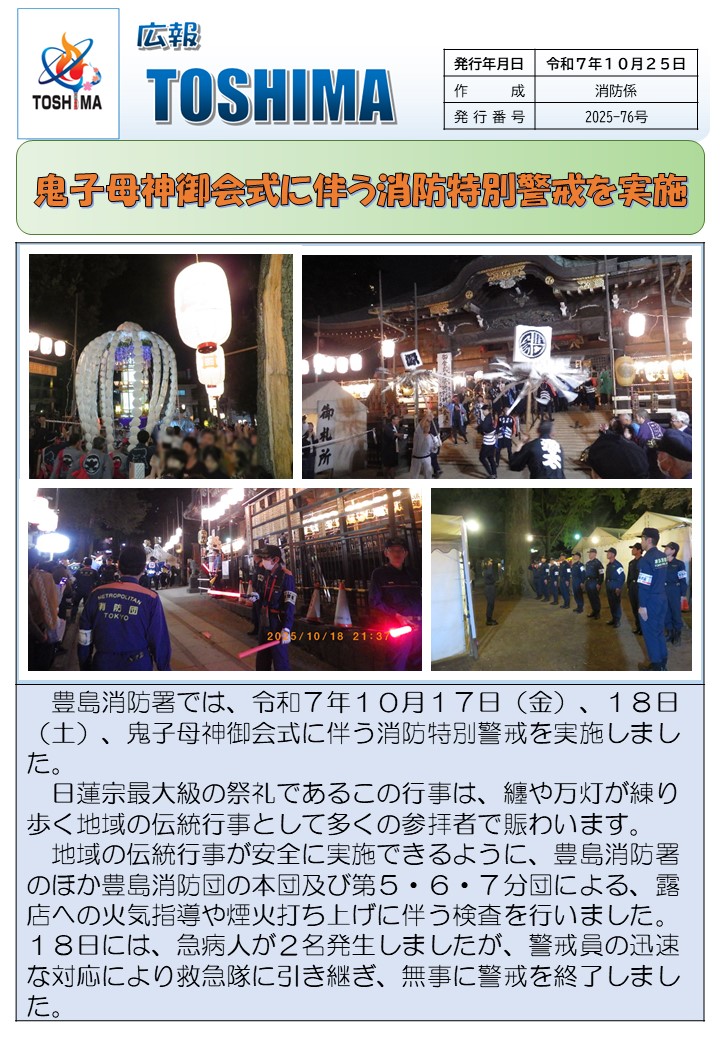 【No.76】鬼子母神御会式に伴う消防特別警戒を実施(File:260KB)