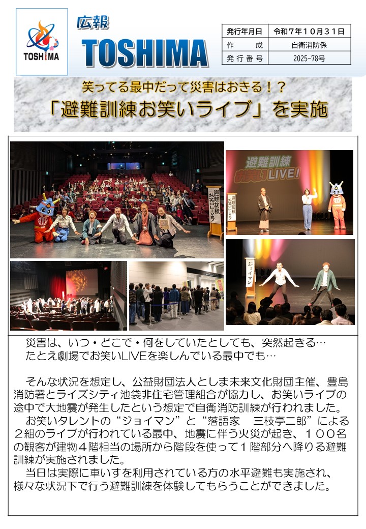 【No.78】 避難訓練お笑いライブを実施(File:260KB)