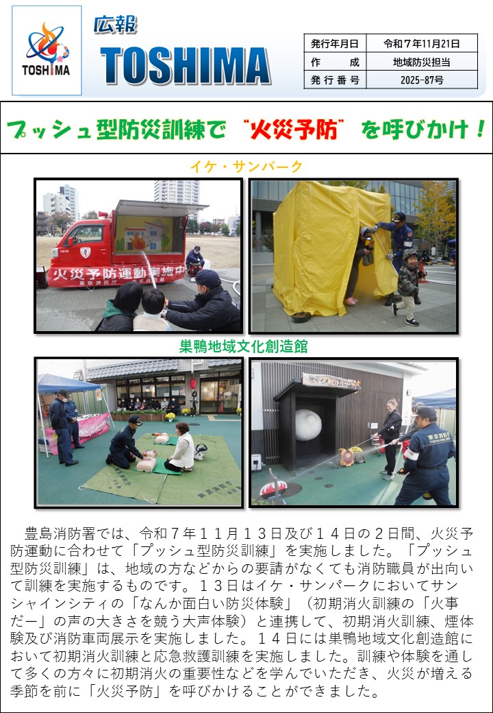 【No.87】プッシュ型防災訓練で“火災予防”を呼びかけ!(File:243KB)