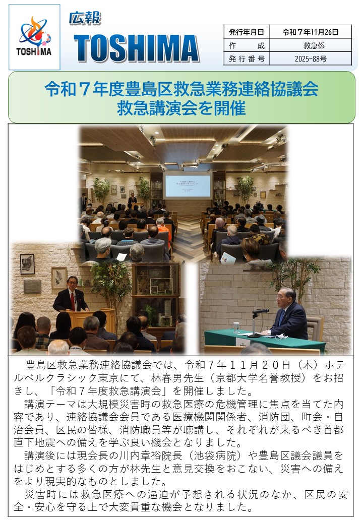 【No.88】令和7年豊島区救急業務連絡協議会講演会を開催.JPG(File:245KB)