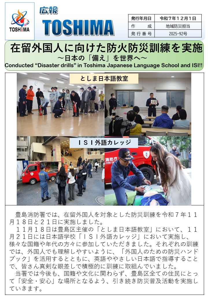 【No.92】在留外国人に向けた防火防災訓練を実施~日本の「備え」を世界に~(File:253KB)