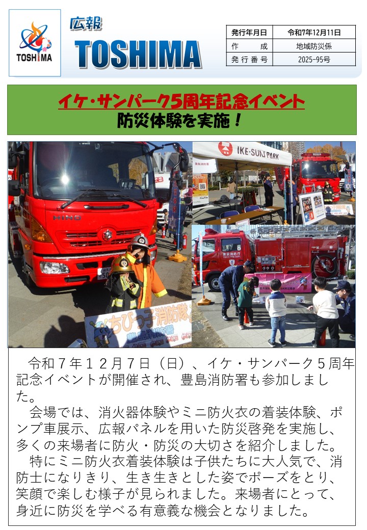 【No.95】イケ・サンパーク5周年記念イベントで防災体験を実施!(File:256KB)