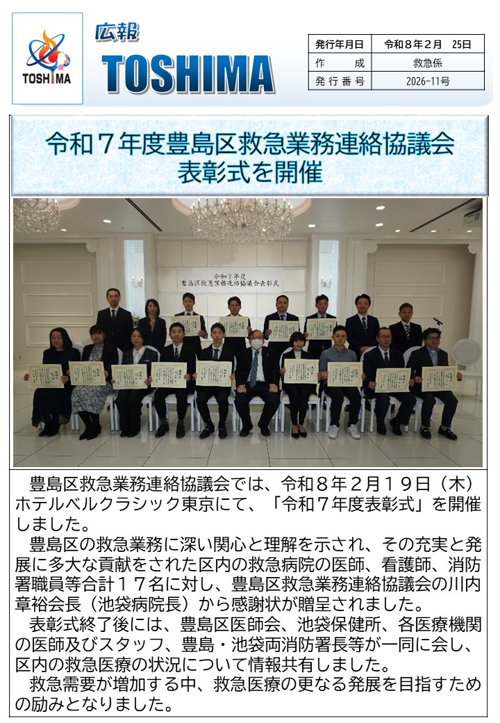 【No.11】令和7年度豊島区救急業務連絡協議会表彰式を開催(File:254KB)