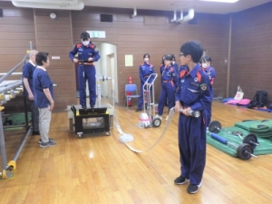 団体行動や礼節を学ぶ規律訓練、ロープを使った救助訓練、心臓マッサージなどの救急訓練や消火器を使った消火訓練などを行っています。