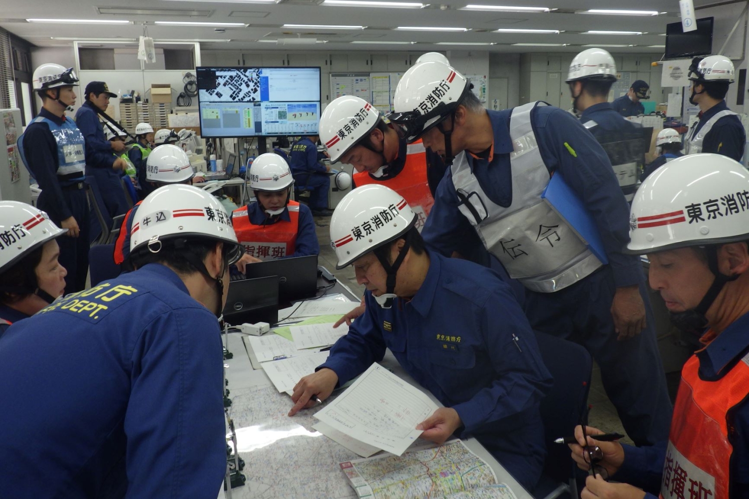 令和7年10月に実施した震災図上・実動訓練は、首都直下地震発生による大きな被害と街の混乱が予想される中、いかに「公助」を充実させられるかを目的としています。